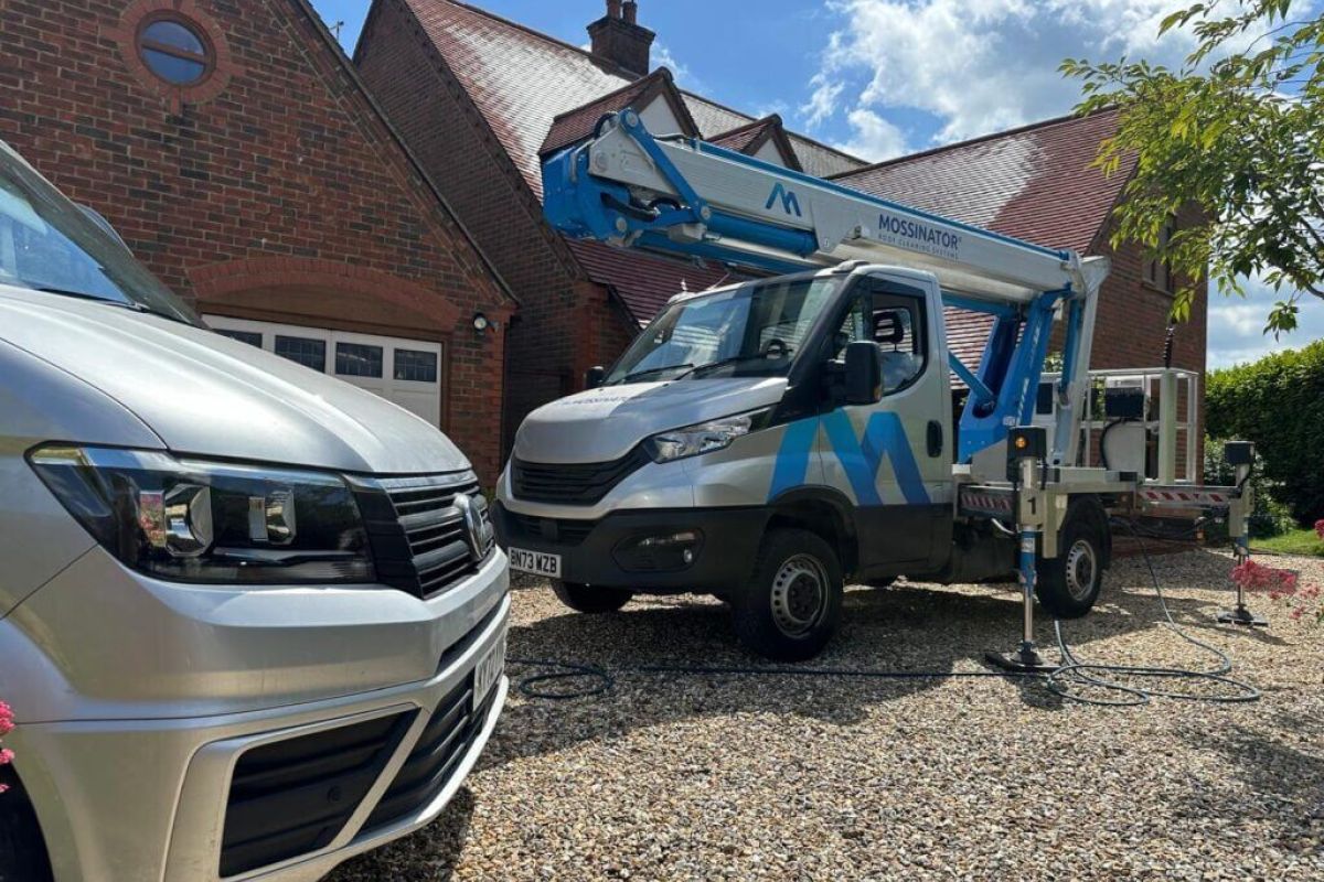 Using various methods dependant on roof tile, the roof can either be brushed and scraped the to remove the moss, low pressure cleaned using water or air brushed. Once cleaned a soft wash treatment is applied which helps prevent the moss returning. All Mossinator technicians are PASMA and IPAF trained allowing them to access the roof safely by either scaffold or cherry picker.